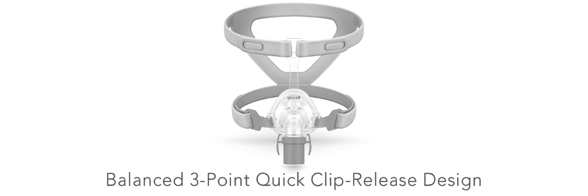 The 2-point quick release headgear clips allow the mask to be easily removed with just two quick movements and allows easy donning without adjusting the headgear. This feature reduces fidgeting with the mask after donning and helps ensure repeatable location of the mask on the patient's face ensuring the greatest comfort and reliable sealing.
