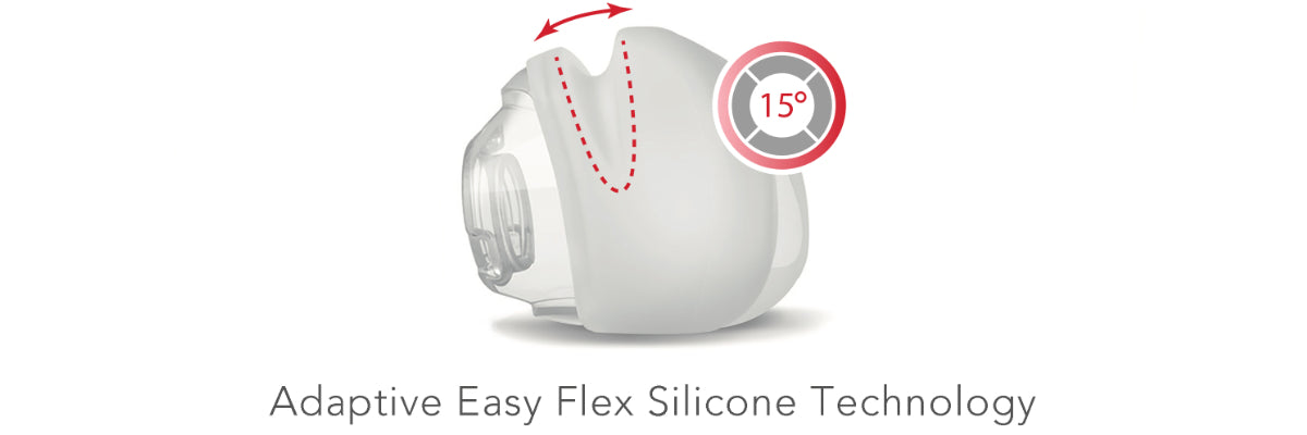 The bridge of the nose is the most challenging area for any CPAP mask to seal. There are potential for leaks if adjustment is too loose, and masks can create sores and hotspots if adjustment is too tight. The Adaptive Easy Flex technology on the AmeriFlex Comfort Series solves this problem by providing a U-shaped feature in the nose bridge area made of high-flex silicone that gently compresses creating a reliable seal without generating excessive pressure.