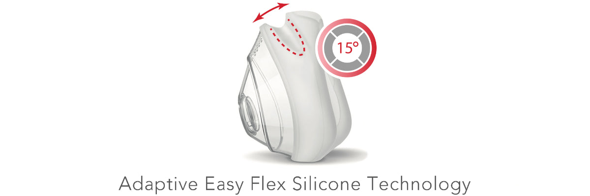 The bridge of the nose is the most challenging area for any CPAP mask to seal. There are potential for leaks if adjustment is too loose, and masks can create sores and hotspots if adjustment is too tight. The Adaptive Easy Flex technology on the AmeriFlex Comfort Series solves this problem by providing a U-shaped feature in the nose bridge area made of high-flex silicone that gently compresses creating a reliable seal without generating excessive pressure.
