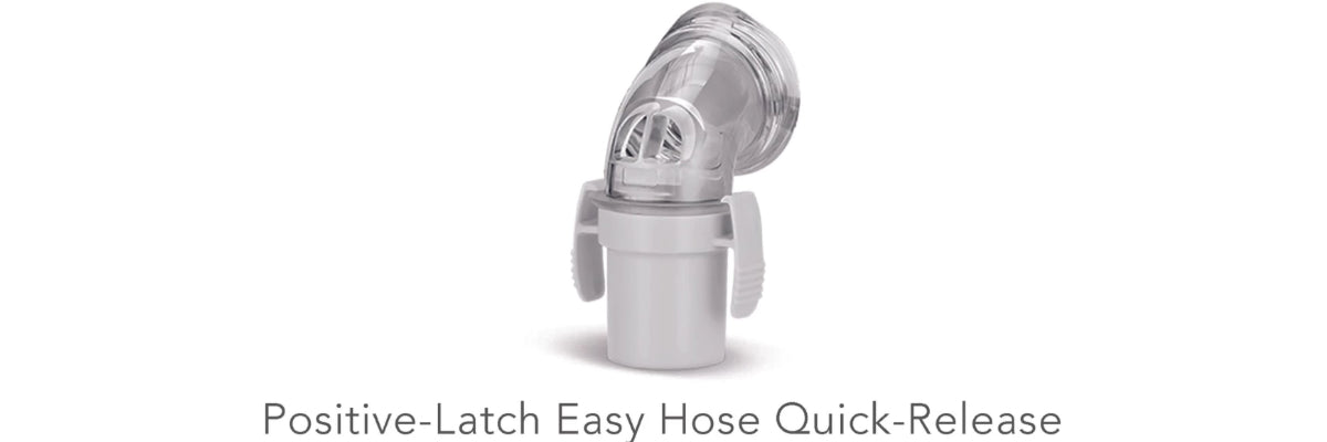 The quick-release supply hose connection makes bathroom breaks a snap without removing the mask in the dark.